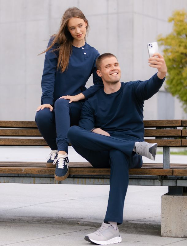 Katoenen joggingbroek met rechte pijpen en drukknoopsluiting
